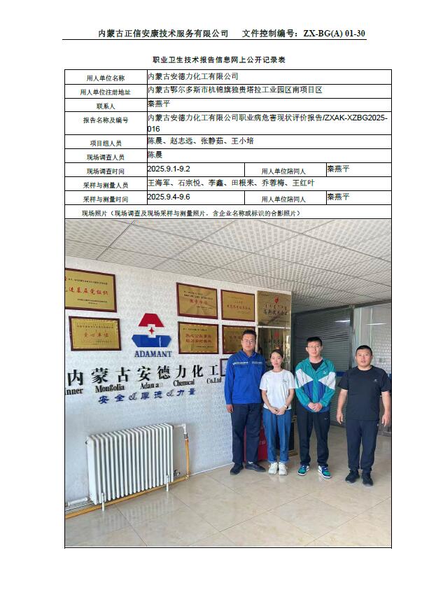 內(nèi)蒙古安德力化工有限公司職業(yè)病危害現(xiàn)狀評價報告