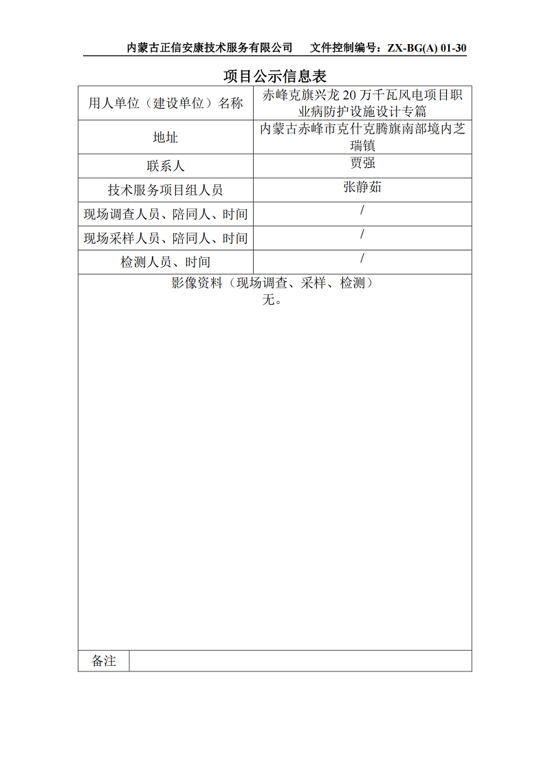 赤峰克旗興龍20萬(wàn)千瓦風(fēng)電項(xiàng)目職業(yè)病防護(hù)設(shè)施設(shè)計(jì)專(zhuān)篇