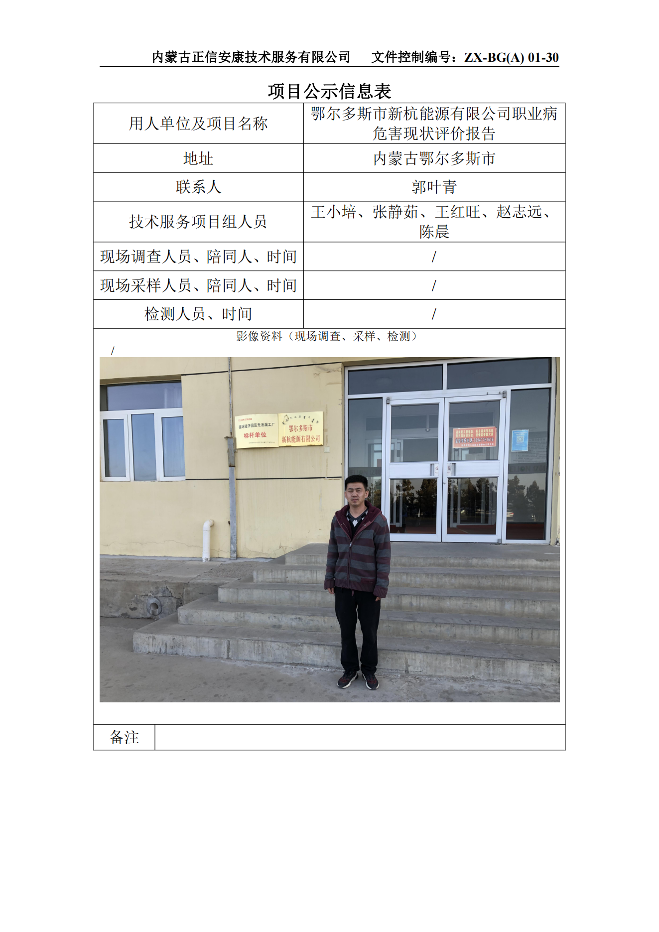 鄂爾多斯市新杭能源有限公司職業(yè)病危害現(xiàn)狀評價
