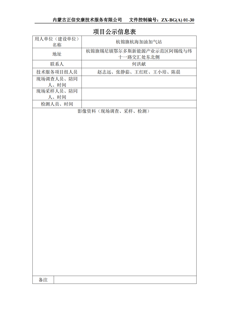 杭錦旗杭海加油加氣站LNG加氣項目職業(yè)病防護設(shè)施設(shè)計專篇項目公示信息表