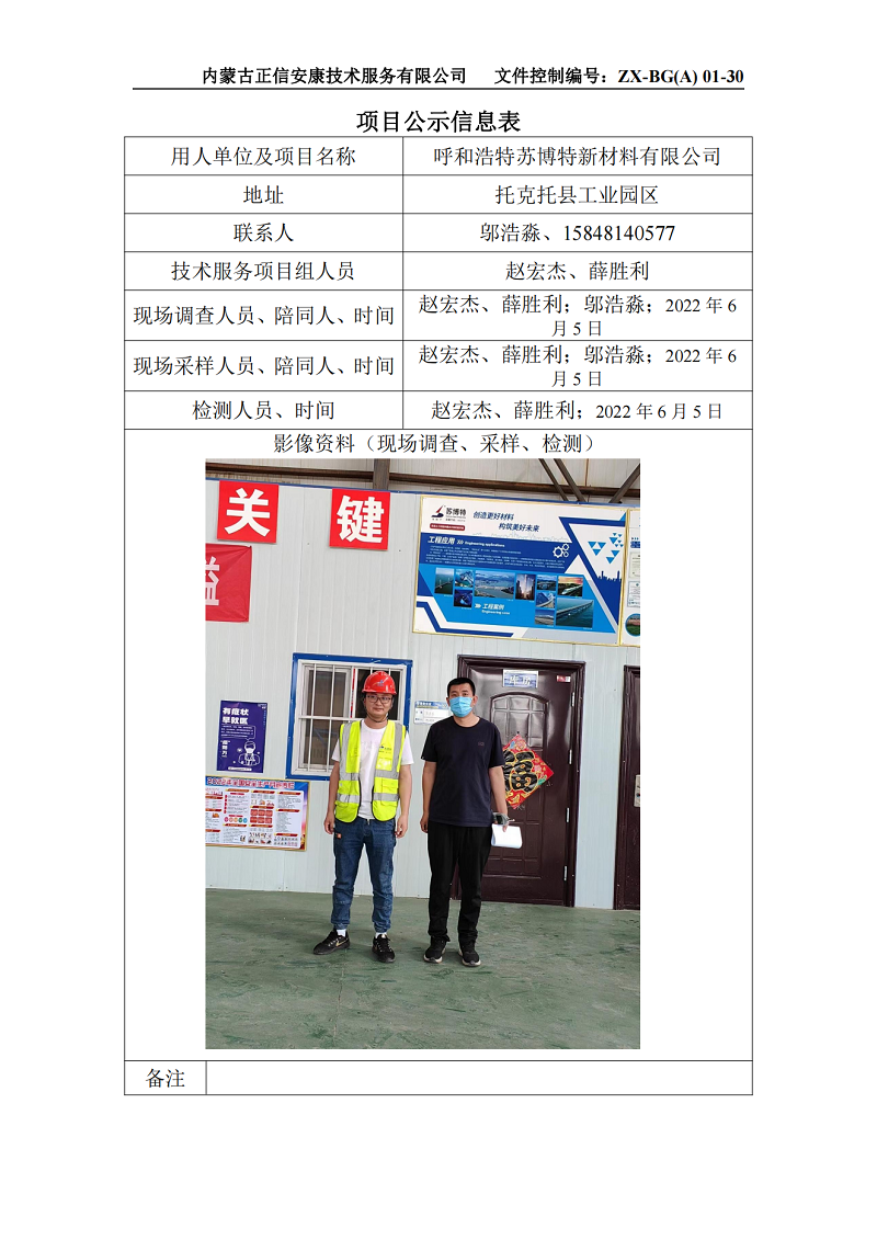 呼和浩特蘇博特新材料有限公司定期檢測項目公示信息表