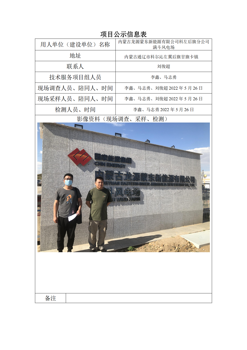 內(nèi)蒙古龍?jiān)疵蓶|新能源有限公司科左后旗分公司滿斗風(fēng)電場(chǎng)項(xiàng)目公示