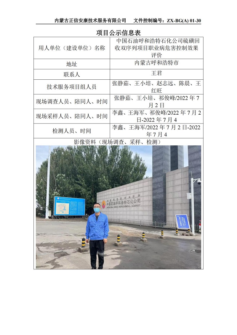 中國(guó)石油呼和浩特石化公司硫磺回收雙序列項(xiàng)目職業(yè)病危害控制效果評(píng)價(jià)