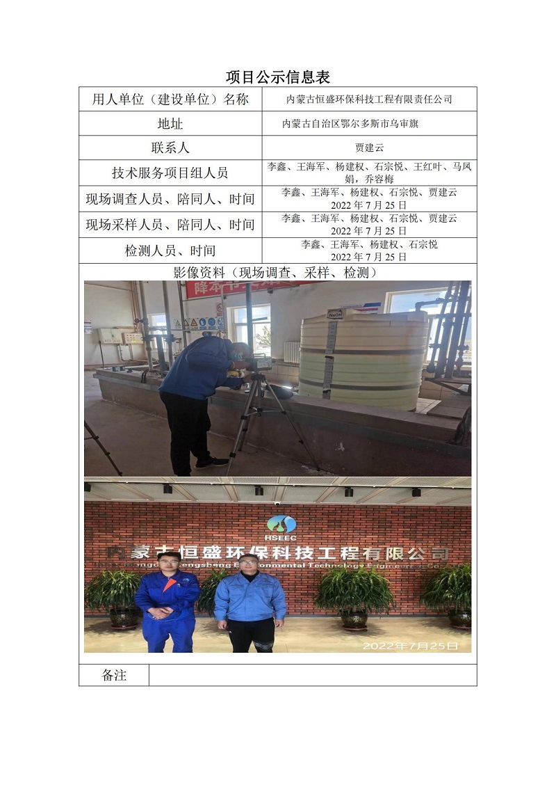 內(nèi)蒙古恒盛環(huán)保科技有限公司定期檢測(cè)項(xiàng)目公示