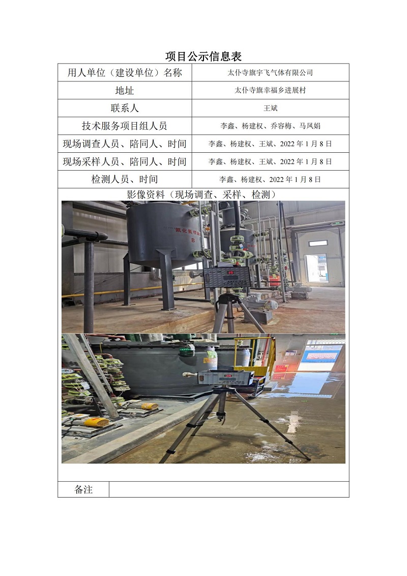 太仆寺旗宇飛氣體有限公司定期檢測項(xiàng)目公示
