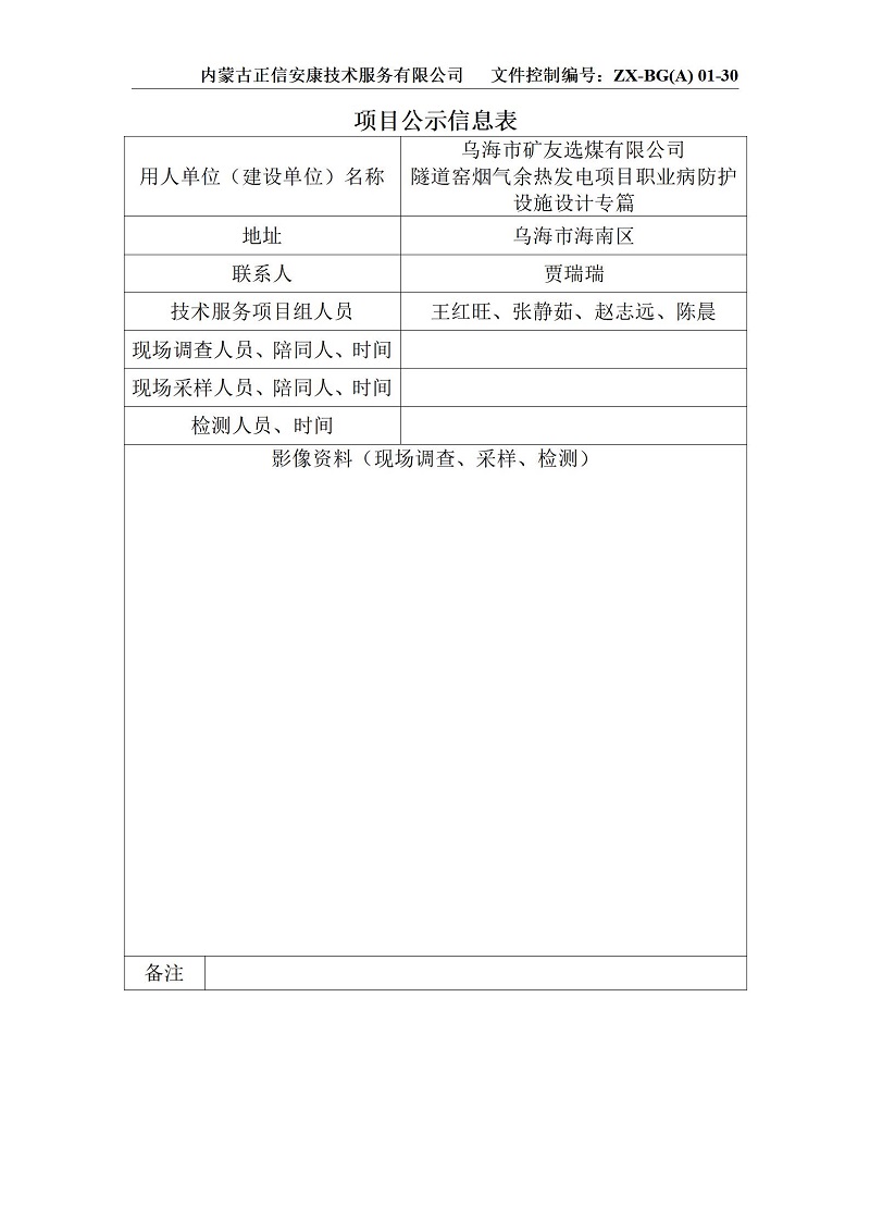 礦友余熱發(fā)電專篇項(xiàng)目公示信息表