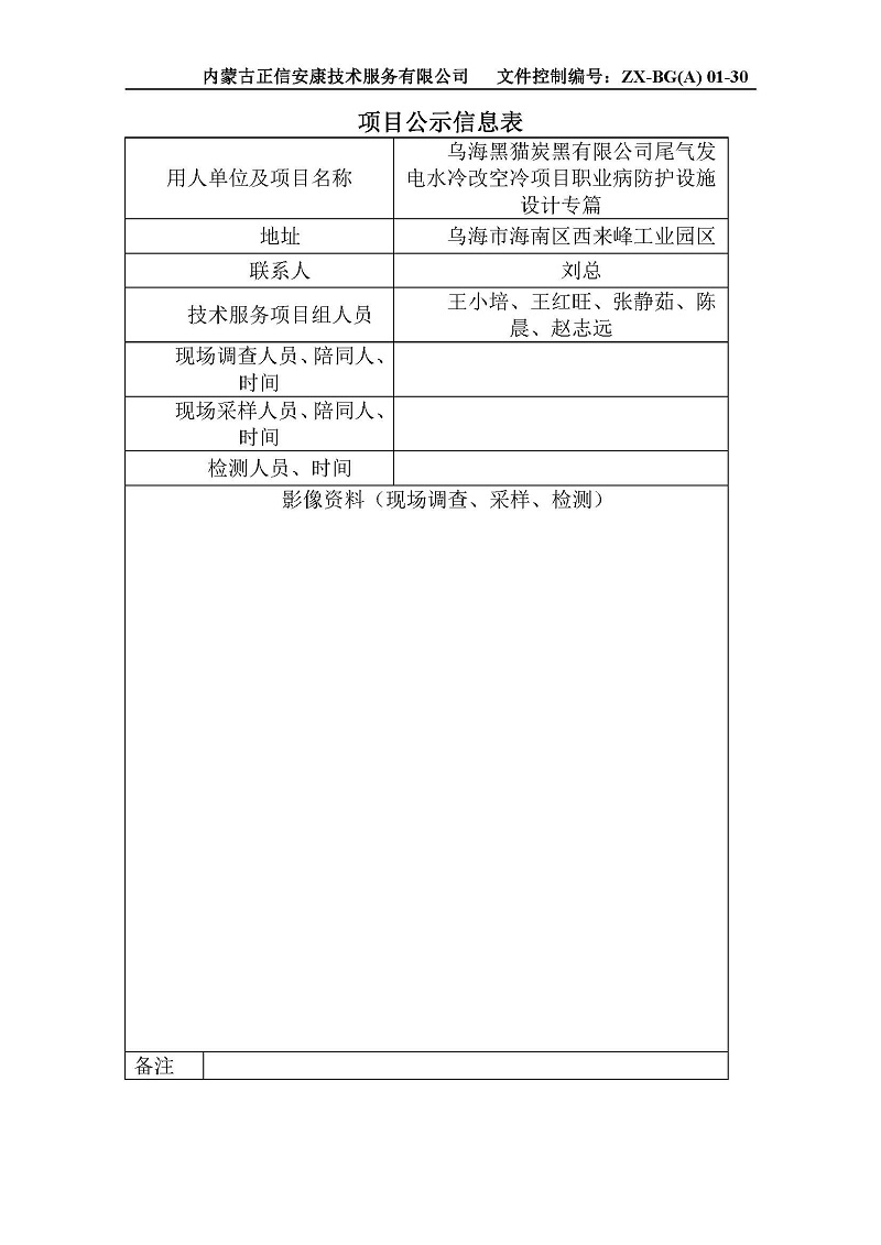 烏海黑貓?zhí)亢谟邢薰疚矚獍l(fā)電水冷改空冷項目職業(yè)病防護設(shè)施設(shè)計專篇