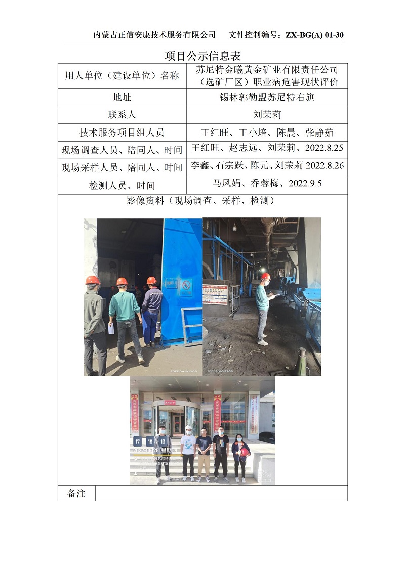 尼特金曦黃金礦業(yè)(選礦廠區(qū))項(xiàng)目公示信息表