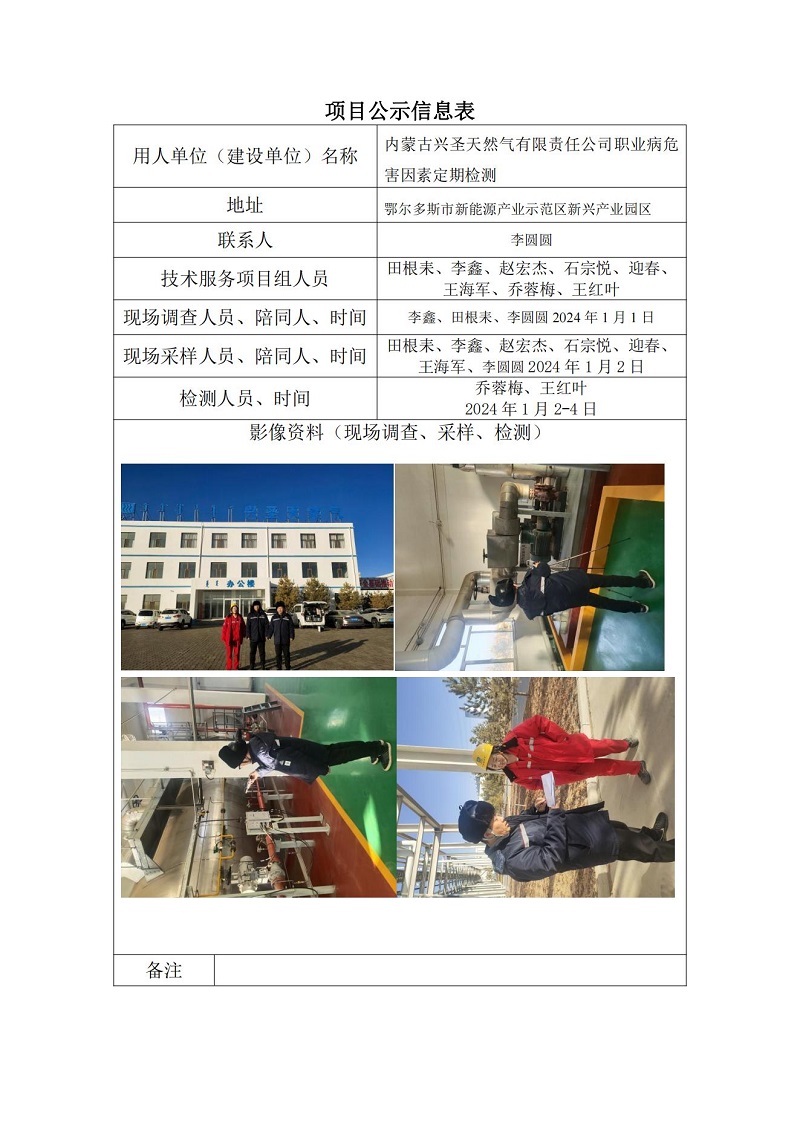 內(nèi)蒙古興圣天然氣有限責(zé)任公司職業(yè)病危害因素定期檢測