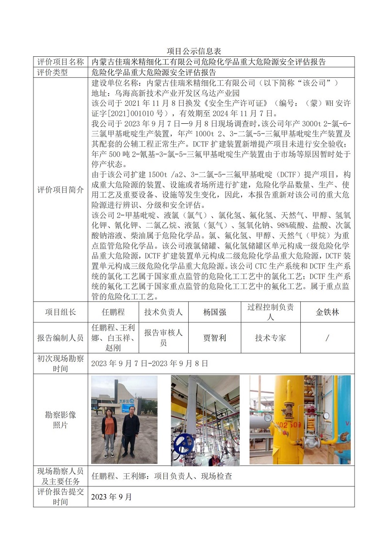 內(nèi)蒙古佳瑞米精細(xì)化工有限公司危險(xiǎn)化學(xué)品重大危險(xiǎn)源安全評(píng)估報(bào)告
