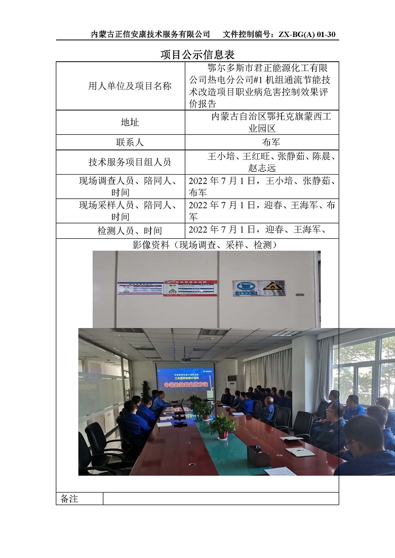 鄂爾多斯市君正能源化工有限公司熱電分公司#1機(jī)組通流節(jié)能技術(shù)改造項(xiàng)目公示信息表