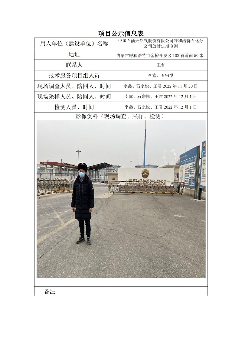 中國石油天然氣股份有限公司呼和浩特石化分公司放射定期檢測(cè)信息公示