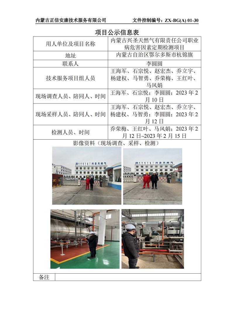 內(nèi)蒙古興圣天然氣有限責(zé)任公司職業(yè)病危害因素定期檢測項(xiàng)目信息公示