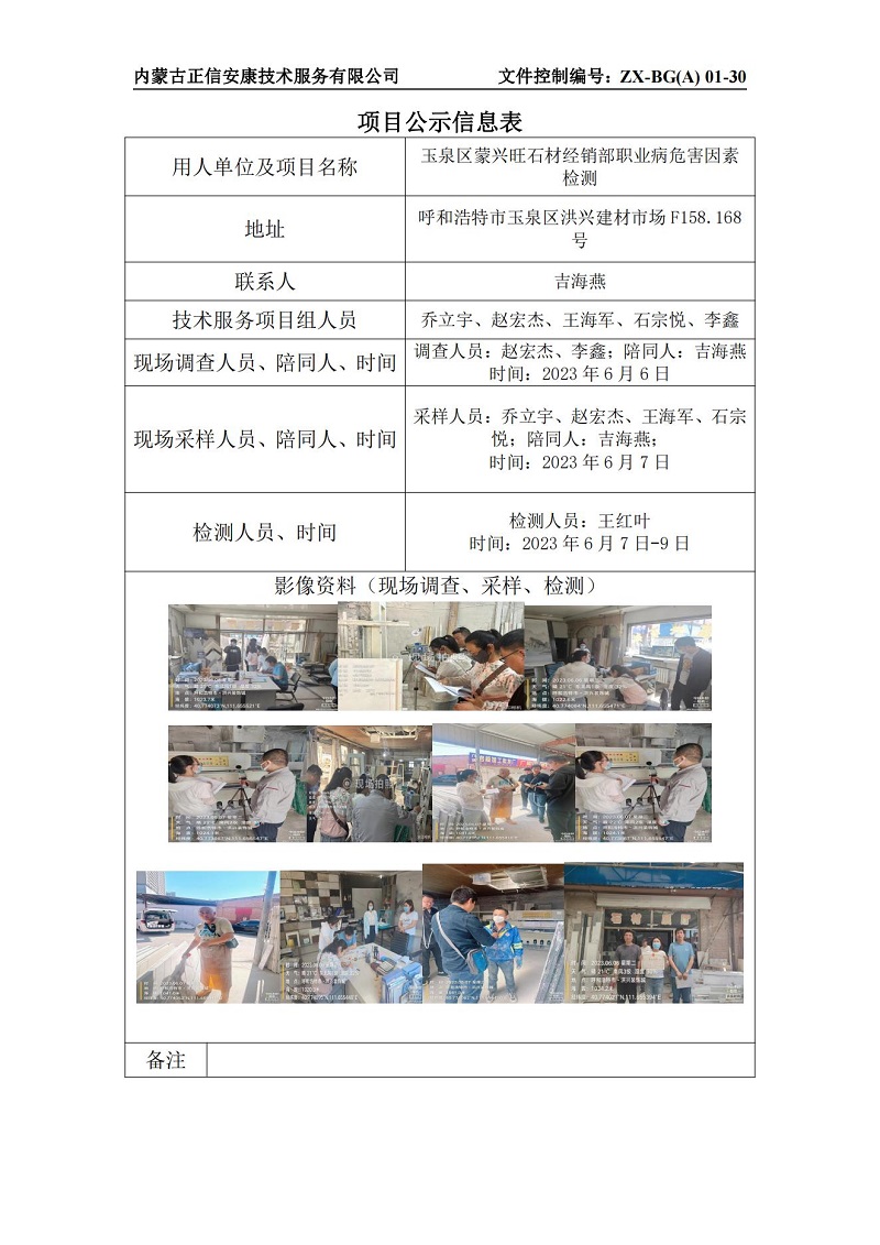 玉泉區(qū)蒙興旺石材經(jīng)銷部職業(yè)病危害因素檢測