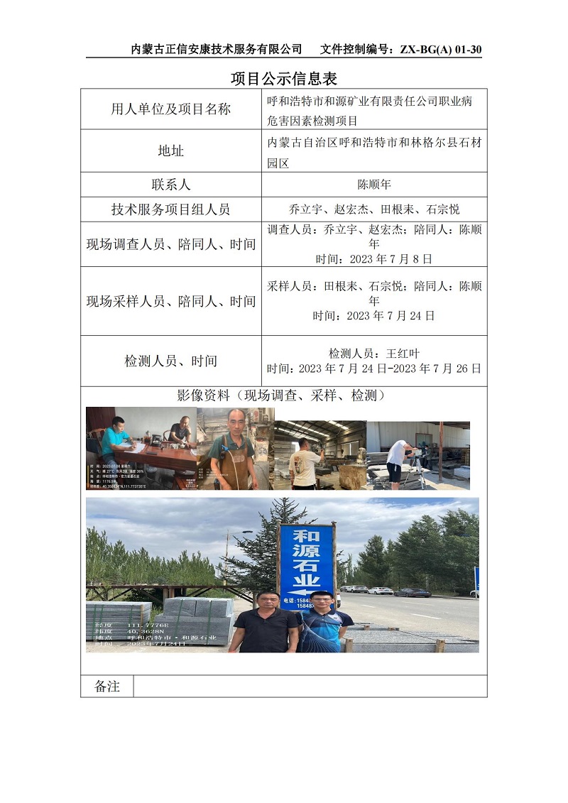 呼和浩特市和源礦業(yè)有限責(zé)任公司職業(yè)病危害因素檢測(cè)項(xiàng)目公示信息表