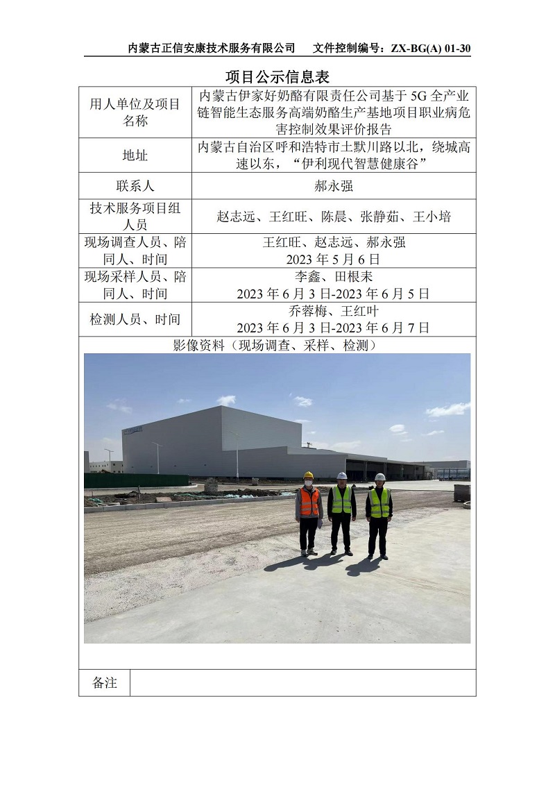 內(nèi)蒙古伊家好奶酪有限責(zé)任公司基于5G全產(chǎn)業(yè)鏈智能生態(tài)服務(wù)高端奶酪生產(chǎn)基地項(xiàng)目職業(yè)病危害控制效果評價(jià)報(bào)告-項(xiàng)目公示信息表