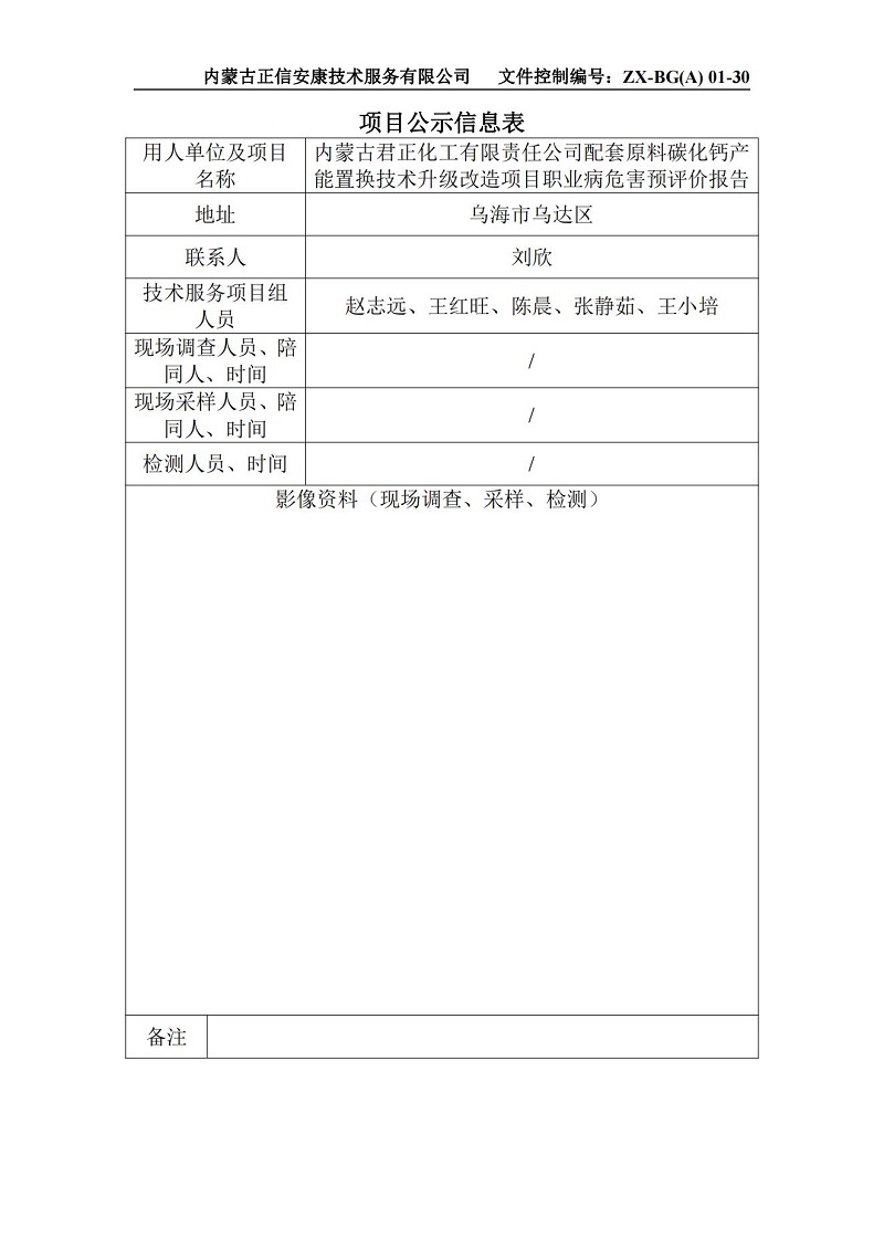 內蒙古君正化工有限責任公司優(yōu)化原料配比節(jié)能環(huán)保技改項目職業(yè)病危害預評價報告-項目公示信息表