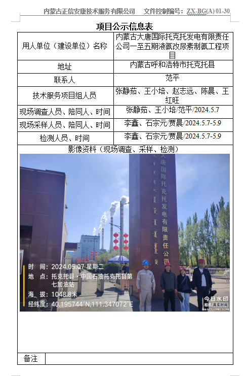 內(nèi)蒙古大唐國際托克托發(fā)電有限責(zé)任公司一至五期液氨改尿素制氨工程項目職業(yè)病危害控制效果評價