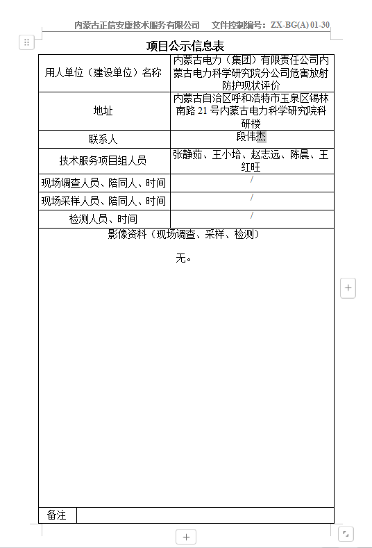 內(nèi)蒙古電力(集團(tuán))有限責(zé)任公司內(nèi)蒙古電力科學(xué)研究院分公司 職業(yè)病危害放射防護(hù)現(xiàn)狀評(píng)價(jià)