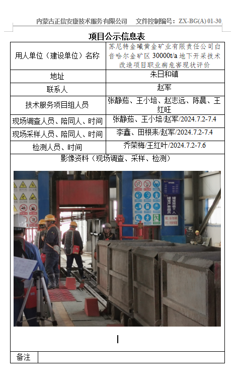 蘇尼特金曦黃金礦業(yè)有限責(zé)任公司白音哈爾金礦區(qū)30000t/a地下開采技術(shù)改造項(xiàng)目職業(yè)病危害現(xiàn)狀評價