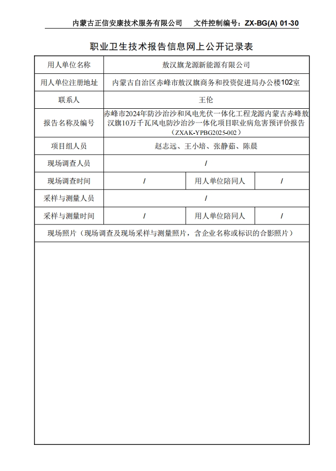 赤峰市2024年防沙治沙和風(fēng)電光伏一體化工程龍?jiān)磧?nèi)蒙古赤峰敖漢旗10萬(wàn)千瓦風(fēng)電防沙治沙一體化項(xiàng)目職業(yè)病危害預(yù)評(píng)價(jià)報(bào)告 -