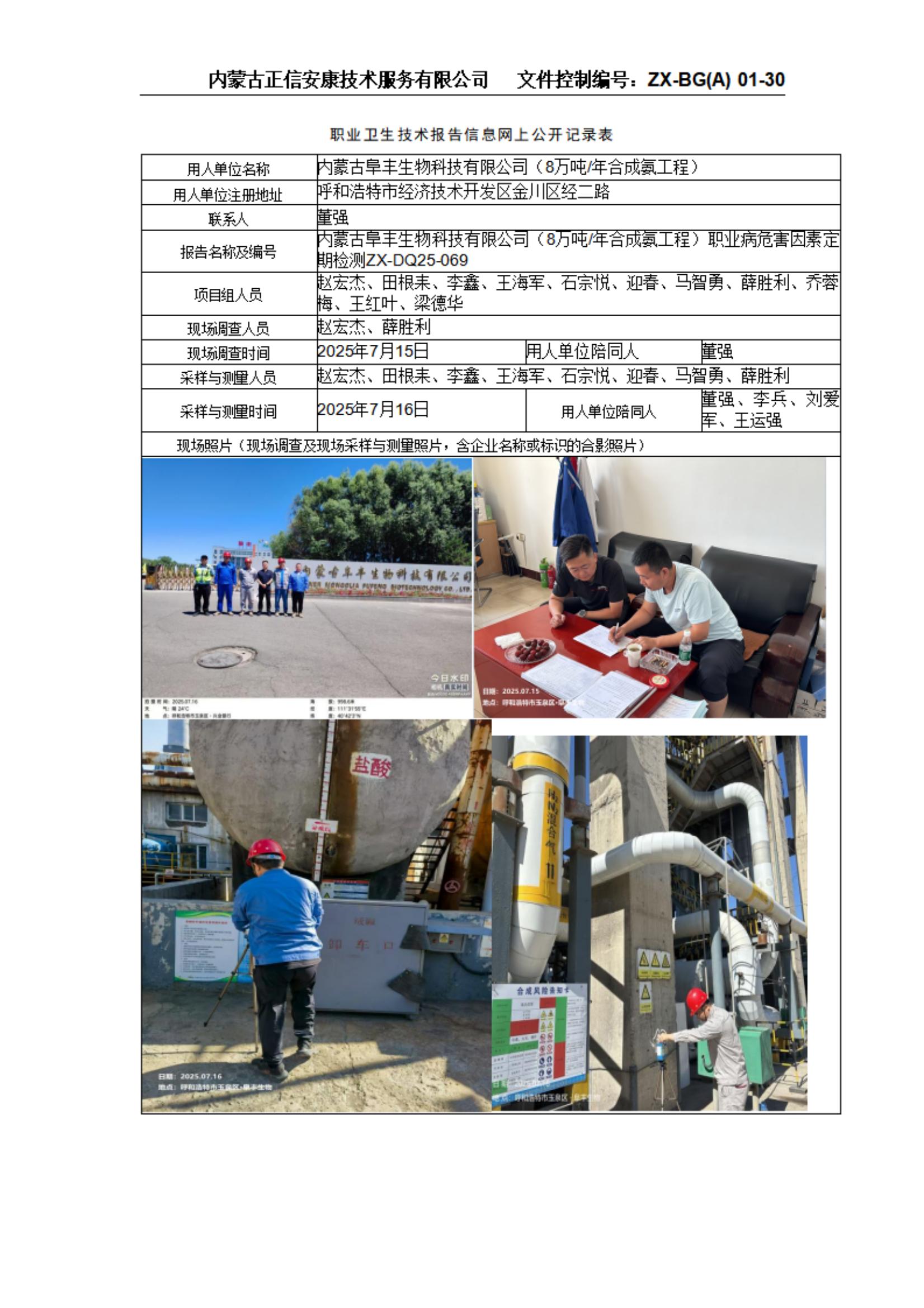 內(nèi)蒙古阜豐生物科技有限公司(8萬噸/年合成氨工程)職業(yè)病危害因素定期檢測(cè)