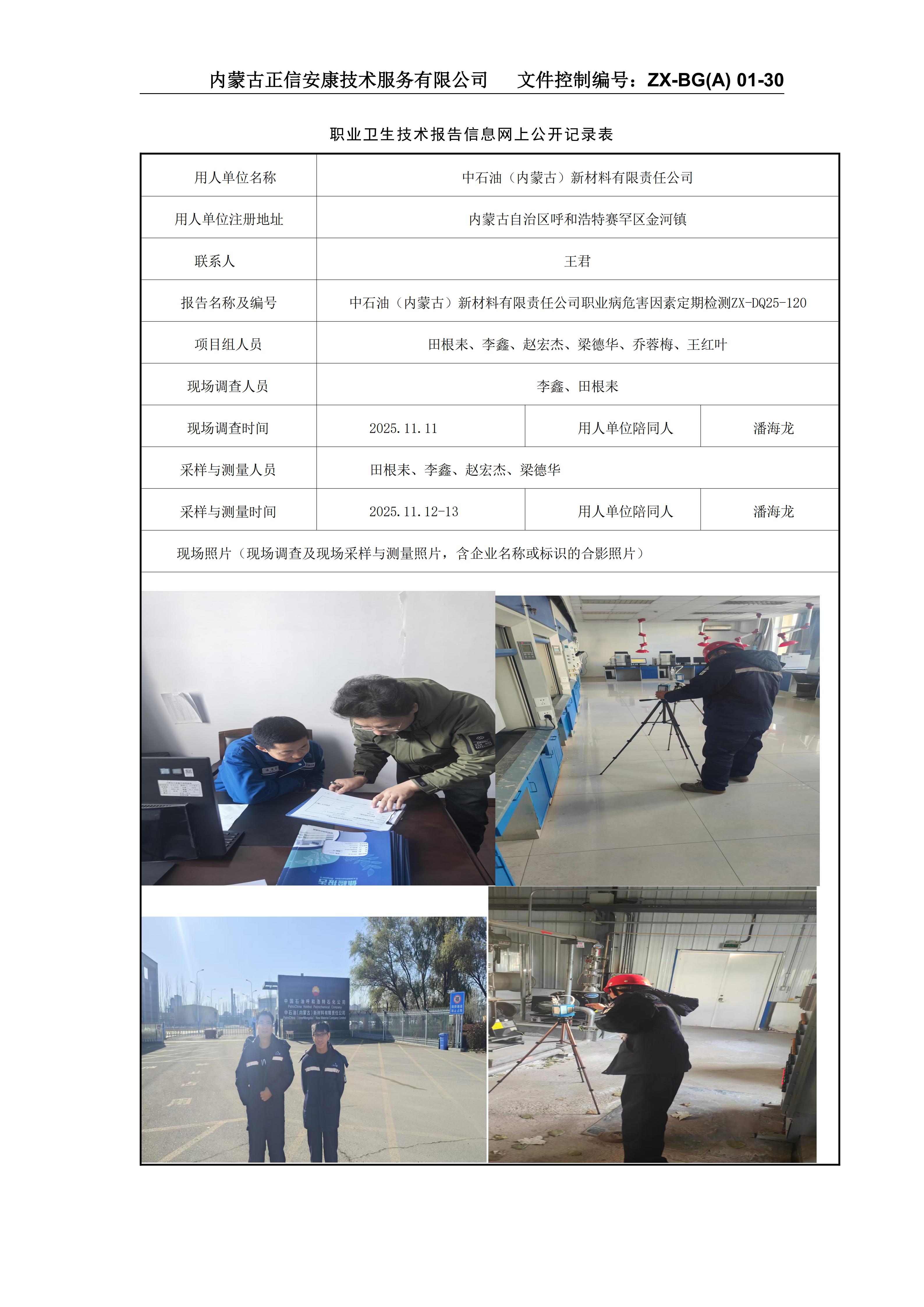 中石油(內(nèi)蒙古)新材料有限責(zé)任公司職業(yè)病危害因素定期檢測