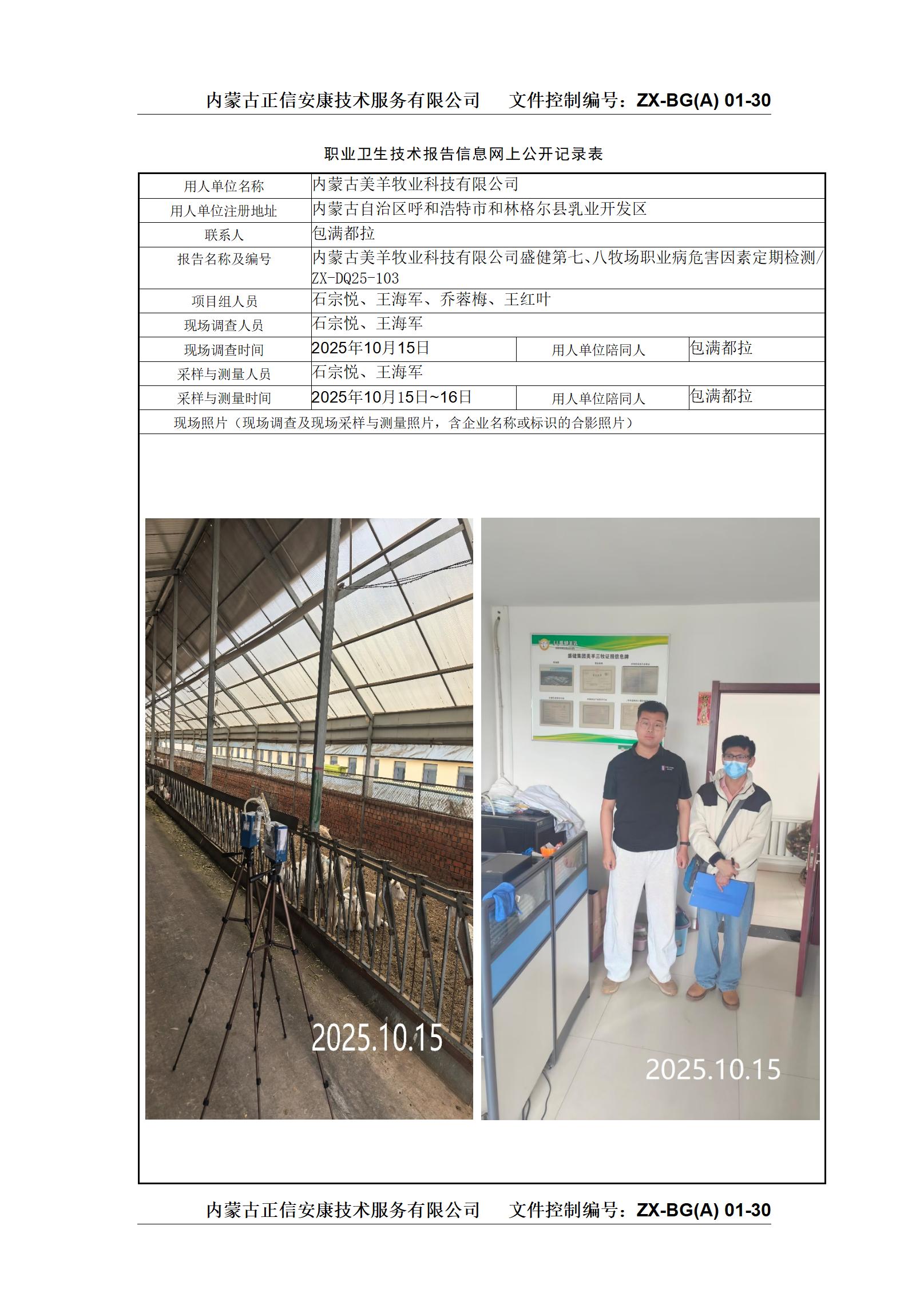 內(nèi)蒙古美羊牧業(yè)科技有限公司盛健第七、八牧場(chǎng)職業(yè)病危害因素定期檢測(cè)
